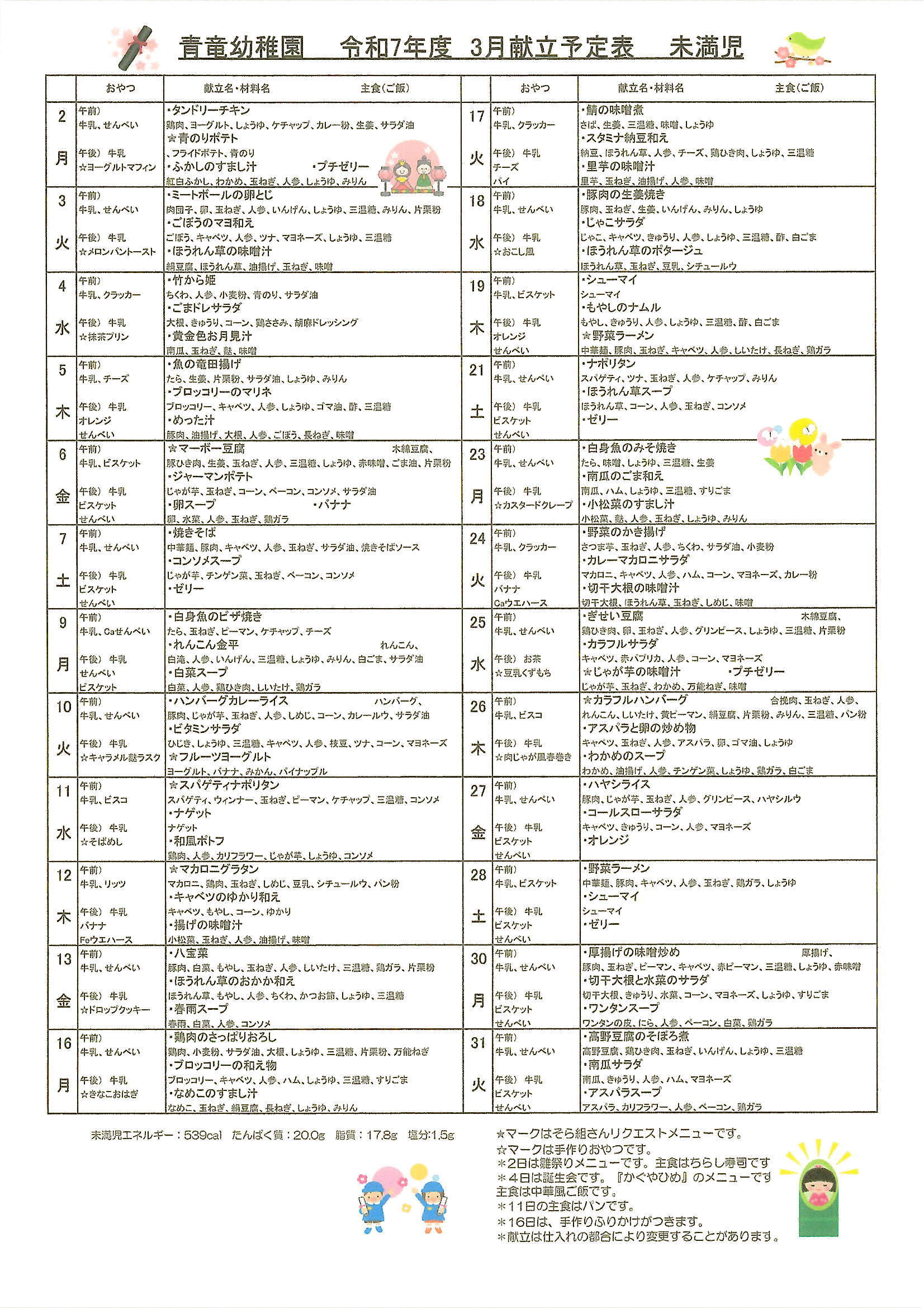 ・令和8年度施設利用決定児さん入園説明会は2月21日(土)です。